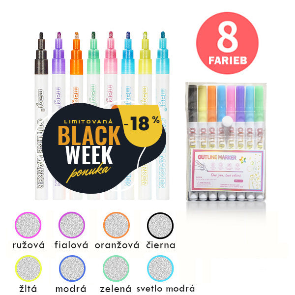 - 8-dielna súprava sa dodáva v čiernej, fialovej, ružovej, oranžovej, svetlomodrej, tmavomodrej, zelenej a žltej farbe.